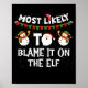 Most Likely To Blame It On The Elf Funny Christmas Holiday