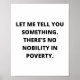 Déjame decirte algo. No hay nobleza en la pobreza.