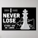 Stay one move ahead with this inspiring chess quote Poster: “I never lose — either I win or I learn.”