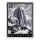 El sello postal argentino de 20 pesos con el icónico Monte Fitz Roy en la zona de El Chalten en la Patagonia.