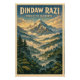 Travel poster featuring Mount Romaing Razi, Myanmar, in a classic retro travel-poster style. Central focus on the rugged, cloud-wrapped mountain peak rising above dense emerald forests and misty valleys, conveying extreme remoteness and untouched wilderness. Soft sunrise light breaks through drifting clouds, highlighting dramatic ridgelines and wild highland terrain. Cool, majestic color palette of mist white, deep jungle green, slate blue, and pale gold. Clean graphic illustration with subtle vintage grain texture. Striking vintage typography headline: “ROMAING RAZI – EDGE OF THE UNKNOWN”. Vertical 2:3 layout, high-resolution, print-ready.