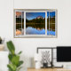 Póster Mountain Lake Reflections Fake Window Illustration
