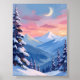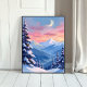 Mountain Moon Winter Watercolor Painting Poster