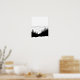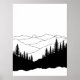 Minimalist mountain landscape featuring pine trees silhouetted against layered peaks and a rising sun. This black and white nature print brings serene wilderness beauty to modern spaces. Perfect for creating a calm, sophisticated atmosphere in living rooms, bedrooms, or offices. The clean lines and timeless design complement contemporary, Scandinavian, and rustic decor styles.