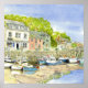 The boats in Padstow's inner harbour sit on the ground until the tide returns. From original watercolour by Christine Hudson.