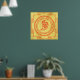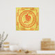 Aquí el Mudra tiene el sánscrito "om" en la palma, flotando sobre el yantra y el denso espacio negro de la galaxia. De Wikipedia: Shri Chakra es una forma de diagrama místico (yantra) usado en la escuela de hinduismo Shri Vidya. Consiste en nueve triángulos entrelazados que rodean un punto central conocido como un bindú. Estos triángulos representan el cosmos y el cuerpo humano. Debido a sus nueve triángulos, Shri Yantra también es conocido como Navayoni Chakra[1]. Cuando el Shri Yantra bidimensional está representado en tres dimensiones, se llama Mahameru. El Monte Meru deriva su nombre de esta forma. Además del monte Meru, todos los demás yantras proceden del Shri Yantra.