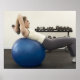 AssetID: 95466926 / {Tetra Images} / Mujer usando bola de ejercicios y pesos de mano
