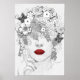 ¡Un hermoso ilustracion de fantasía! Sus brillantes labios rojos son un acento maravilloso para el ilustracion blanco y negro.