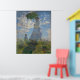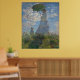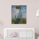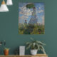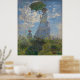 Mujer con Parasol - Madame Monet y su hijo de Claude Monet, óleo sobre lienzo de 1875, es un cuadro de una mujer con un vestido blanco y un paraguas sobre su cabeza sobre la cima de una colina cubierta de hierba y flores silvestres, retroiluminada contra un brillante cielo azul y nubes blancas. A su lado está un niño, Camille, hijo del artista. Pintada con trazos rápidamente aplicados de pintura exuberante de aceite, la imagen mira hacia arriba en la cima de la colina, mientras que el sujeto arroja una sombra profunda y fresca a través de la hierba de campo y flores. Los reflejos amarillos de las flores rebotan sobre el luminoso vestido blanco de la mujer. Monet evoca la luz, el color, la forma, la sombra y la atmósfera con golpes rápidos y decisivos de su pincel en la construcción de una inolvidable imagen de una mujer que camina en medio del mundo natural. Claude Monet (1840-1926) fue fundador y principal impulsor de la escuela de pintura impresionista francesa. Nacido en París, Monet estudió con Eugene Boudin, quien enseñó los fundamentos de la pintura al óleo y de la pintura al aire libre del caballete, y después con el pintor Charles Gleyre, y finalmente se hizo amigo de sus compañeros impresionistas Manet, Renoir, Bazille y otros. Rechazados por el Salón de París y otros recintos de la institución académica del siglo XIX, los impresionistas pintaron directamente de la naturaleza, capturando momentos fugaces en el tiempo con colores brillantes, rotos y pequeñas y rápidas pinceladas. Monet vivió y estudió en Londres y Holanda, produciendo muchas pinturas, hasta la primera exhibición impresionista en 1874, donde su pintura Impresión: Sunrise ganó notoriedad y le ganó al grupo su famoso apodo. Tras la muerte de su hijo y de su primera esposa, Camille, Monet se instaló en Giverny, donde el éxito creciente le permitió establecer una casa y un estudio rodeados de jardines elaborados. Monet pintó muchos paisajes, incluyendo escenas de jardín y su famosa serie de Catedral, con cada vez más preocupación por la luz, el color y la atmósfera, con una preocupación por el color y las formas que en su mayor edad bordeaban una especie de abstracción, convirtiéndolo en uno de los pintores más queridos de la era moderna.