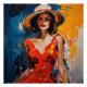 Las pinceladas expresivas bailan a través del lienzo, capturando el movimiento de una mujer con un vibrante vestido de cóctel y gorra de paja. Surrealista y enérgico, esta pieza encarna la esencia del expresionismo con sus colores vivos y su composición dinámica.
