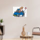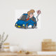 Una mujer en un accidente automovilístico parada al lado de su auto. Este diseño parece realmente efectivo en este Poster