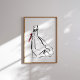 Elegante línea de tinta de una mujer coreana en un hanbok tradicional sosteniendo una cinta roja. La decoración minimalista y expresiva de las paredes de interiores modernos.