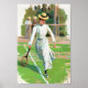 Mujer jugando al tenis, alrededor de 1900. Lleva una elegante falda larga y blusa. Ella tiene un gorra de paja en la cabeza. Hay una pareja en el fondo. Están hablando. ____________ La imagen antigua es cortesía de la Biblioteca Nacional de Noruega . Andreas Bloch (1860-1917) fue el artista original. Fue editado y convertido en una pintura digital por Alma Wad .