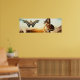 Echa un vistazo a esta icónica obra de poster de películas de Wonder Woman sobre una montaña al atardecer.