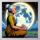 Meditación de ancianas bajo luna llena. Poster temática de la Ilustración Espiritual en un ilustracion ai hiperrealista al estilo de una historieta.