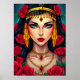 Trae magia y emoción a tu espacio con esta mujer mística con ojos azules y rosas rojas fantasía poster de arte. Con un retrato femenino surrealista con ojos azules vívidos, sombras suaves y rosas rojas profundas, esta obra de arte evoca el misterio, la belleza y la fuerza. Perfecto como decoración mural para los amantes de la fantasía, los aficionados al estilo gótico o cualquier persona que aprecie el arte femenino cautivador.