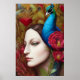 Femenina con rosas y helechos rojos y un resumen de arte de IA abstracto de pavo real creado usando wombo dream AI de minx267