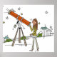 Póster Mujer que usa un telescopio astronómico