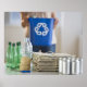 Póster Mujer reciclando botellas plásticas, latas y