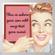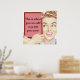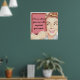 Poster con un ilustracion vintage de una mujer en los años 50 sosteniendo un cartel. Personalizar con tu propio texto y color de fondo pulsando el botón personalizar. ¡Retro genial!