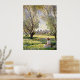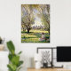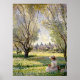 "Woman Seated under the Willows" captura un momento tranquilo en la naturaleza, donde una figura descansa bajo el elegante dosel de los sauces. Esta obra de arte explora los efectos de la luz y la atmósfera, personifica el dominio de capturar momentos fugaces de la belleza cotidiana. En primer plano, la figura de una mujer se representa en una posición relajada, tal vez leyendo o contemplando, rodeada de vegetación exuberante y ramas suavemente balanceadas de los sauces. Las pinceladas son fluidas y expresivas, transmitiendo la suavidad de las hojas y el juego de la luz filtrada a través del follaje. La escena está imbuida de una sensación de serenidad y soledad, mientras el ambiente tranquilo envuelve a la figura en un abrazo pacífico. La composición invita a los espectadores a sumergirse en el entorno natural, donde la interacción de luz y sombra crea un contraste dinámico y añade profundidad a la escena. Encima, el cielo se extiende a lo ancho, pintado en tonos azules y blancos suaves, con nubes espesas que aumentan la sensación de apertura y tranquilidad. La meticulosa atención a los efectos atmosféricos capta los siempre cambiantes matices de la luz y el clima, mejorando la calidad inmersiva de la pintura. En general, "Woman Seated under the Willows" ejemplifica la capacidad de evocar un estado de ánimo y evocar un sentido de lugar a través de un estilo impresionista distintivo. La pintura invita a los espectadores a detenerse y apreciar la belleza atemporal de la naturaleza y la tranquilidad que se encuentra en momentos de contemplación bajo el resguardo abrazo de los sauces.