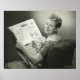 Mujer sentada en sillón, leyendo periódico, sonriendo, (B&W) | George Marks | AssetID: 57539557