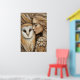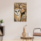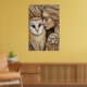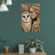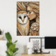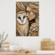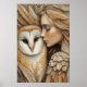 Retrato de una mujer con el pelo rubio largo, la cara se volvió de perfil, los ojos se cerraron y los labios se separaron ligeramente. Está adornada con una corona de plumas, y su hombro está cubierto por una cascada de plumas. Una gran lechuza de granero de plumaje marrón y blanco se esconde en la mejilla, con sus grandes ojos oscuros mirando directamente al espectador. Un regalo perfecto para los amantes de las lechuzas.