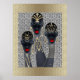 Esta obra de arte contemporánea de estilo africano cuenta con tres elegantes y alargadas siluetas femeninas, cada una con elegancia y adornada con accesorios de oro de moda. El sorprendente contraste de las siluetas con el telón de fondo pone de relieve la belleza y la fuerza de las mujeres africanas, lo que hace que sea una adición perfecta a cualquier decoración moderna.