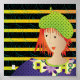Arte digital original que presenta a una mujer con una boina verde y alegre. Añadir un marco para un aspecto de diseñador. Seleccione entre 4 diseños. Combina 2 o más para crear una pantalla llamativa.