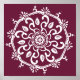 Esta mandala blanca se sienta sobre un fondo rojo-violeta oscuro. El color es profundo y refinado. Parte de la colección Payon Mandala.