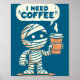 Póster Mummy Halloween I Need Coffee Funny Sarcastic Caff