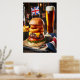 Disfrute de un clásico de los Munchies de Manchester con esta copiosa hamburguesa estilo pub británico. Una gruesa parrilla de ternera de Angus, a la perfección jugosa, está recubierta de queso cheddar envejecido, anillos de cebolla crujientes y una generosa mancha de la salsa H, todo apilado en un bollo de aleta inglesa tostada. Una pequeña bandera británica le da un toque de encanto británico, mientras que un telón de fondo de una pinta de cerveza completa esta clásica comida de pub.