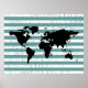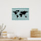 Un mapa gráfico del mundo con fondo rayado de color blanco y azul (color personalizable)