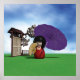 Representación digital 3D de un Kokeshi, muñeco japonés, en una pradera de verano