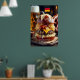 Sumérjase en la experiencia de Munich Munchies con esta deliciosa hamburguesa alemana. Un grueso, jugoso, salchicha de carne de ternera infundida por las salchichas, asado a la perfección salada, está recubierto de queso de gouda fundido, salchichas angostas y una generosa mancha de mostaza de grano entero. Todo enclavado entre un pan tostado de pretzel. Una pequeña bandera alemana le da un toque festivo, mientras que un fondo borroso da un toque de cerveza refrescante, completando esta delicia culinaria alemana.