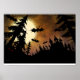Póster Murciélagos de Halloween, castillo y luna