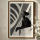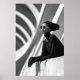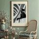 Hacer una declaración sorprendente con esta cautivadora impresión de arte en blanco y negro, una exhibición magistral de moda vanguardista y fotografía arquitectónica. Este retrato de perfil atractivo presenta a una mujer de aplomo enigmático, adornada con gafas de sol redondeadas elegantes y un conjunto de gorras negras dramáticas, atado con un broche circular ornamentado. Su piel oscura crea un contraste fascinante en el contexto de una arquitectura moderna abstracta y curvada, con luz y sombra que cruzan las líneas. Su elegante turbante negro y sus largos guantes de cuero completan una sofisticada mirada de misterio y moda futurista. Esta obra de arte se apoya con gracia en una pared texturada y encarna una presencia atemporal y segura. Perfecto para espacios vivos modernos, estudios de moda o cualquier decoración que busque un toque de elegancia única, arte audaz y una narrativa visual verdaderamente inolvidable.