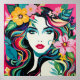 Este diseño abstracto vibrante y llamativo capta la esencia de una diosa tropical, mezclando elementos florales autistas con olas de pelo vívidas y coloridas. La mirada fascinante y los colores ricos y saturados crean una composición onírica y animada que emite calidez y energía. Perfecto para los amantes del arte pop vibrante y la belleza botánica.