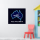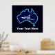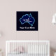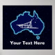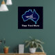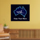 Una simple silueta blanca de un trineo de perro y la Cruz del Sur superpusieron en un mapa azul de Australia. Todo en un fondo estelar. ¿Quién lo hubiera pensado? Mushing boca abajo en Oz. El trineo de perros es bastante popular en Australia. En el Monte Hotham en Victoria hay una gran carrera cada año.