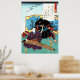 Un ninja, sacando su espada de su scabbard, se cuela sobre un músico tocando el Koto con una mano mientras que en la otra criando un abanico doblado. Una página de la serie, Inaka Genji. De un original corte de madera del siglo XIX (1853), Suma, de Utagawa Toyokuni. Todos los derechos reservados © 2012 padre art