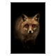 Ein mystisch wirkender Fuchs mit orange leuchtenden Augen auf einem dunklen Hintergrund.
