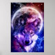 Póster Mystical Galaxy Wolf Face con la luna llena