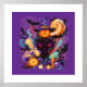 Transform your space with the Mystical Halloween Witch and Pumpkin Poster. This enchanting artwork showcases a witch’s mysterious face, a glowing jack-o’-lantern hat, swirling smoke, potion bottles, a candle, bats, and spiderwebs against a rich purple background. Perfect for adding a magical Halloween touch to your walls, parties, or seasonal décor, this poster captures the spirit of mystery and fantasy.