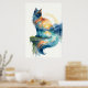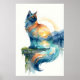 Póster Mystical Sunset Cat Double Exposure Watercolor