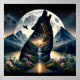 Póster Mystical Wolf Howling en Moon Surreal Personalizad