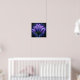 This whimsical poster features a vibrant lotus flower with glowing purple petals and green leaves against a dark, abstract background, conveying a mystical feel. Finished as an oil paint art print.