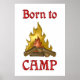 Un camper disfrutará de este divertido diseño con una brillante hoguera y las palabras - Nacido en el campamento. Hace un gran regalo para un amante del camping.