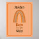 Un gran Poster para la guardería. Personalice el texto al nombre que elija y puede conservar, cambiar o quitar el texto 'Nacido para ser salvaje' siguiendo el símbolo del sistema 'Personalizar esta plantilla'. Colores neutros y agradables en tonos marrones.