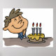 Un chico de cumpleaños con una torta y velas. Este diseño parece realmente efectivo en este Poster