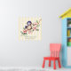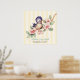 Pequeño pájaro azul dulce sobre una rama de árbol con delicado ilustracion vintage de flores rosa claro. Patrón amarillo claro y amarillo en el fondo, junto con un patrón azul claro con puntos de polka blanco. Personalízalo con el nombre del bebé y la información de nacimiento.